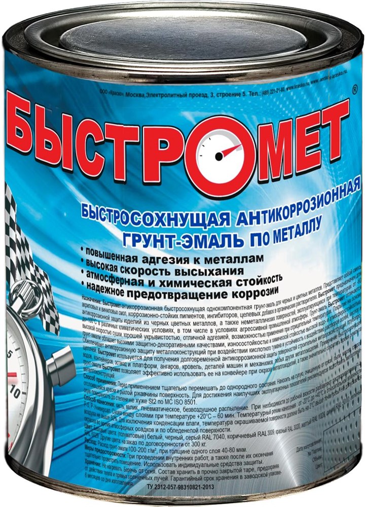 - Время высыхания быстросохнущей грунт-эмали Быстромет "до отлипа" составляет 30 минут при температуре +20°С.